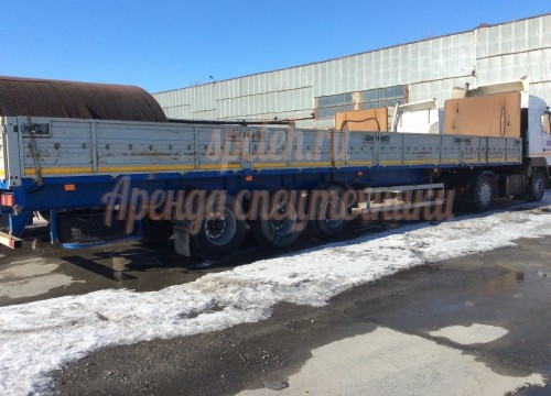 Перевозка крупногабаритных грузов. КАМАЗ с полуприцепом 11 метров длиной и 2.5 м шириной. Расчет нал/безнал. Оплата почасовая (от 2-х ч.), дневная.